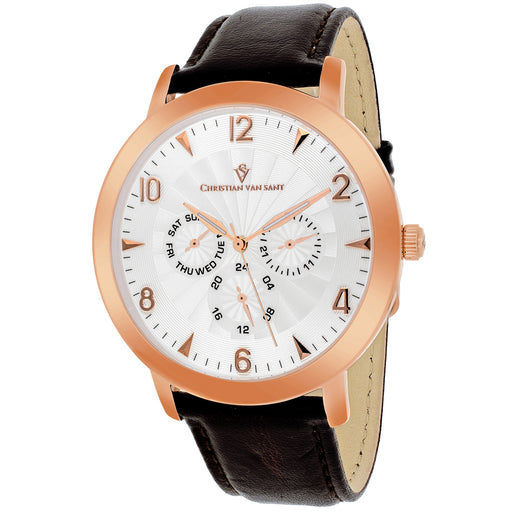 Stainless steel case, Leather strap, Silver dial, Quartz movement, Scratch resistant mineral, Water resistant up to 10 ATM - 100 meters - 330 feet