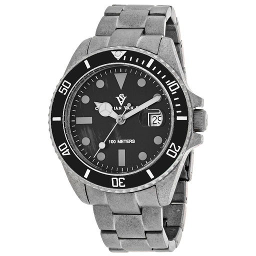 Distressed Stainless steel case, Distressed Stainless Steel bracelet , Patterned Black dial, Quartz movement, Scratch resistant mineral, Water resi...