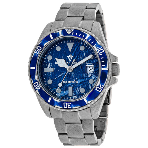 View full detailsDistressed Stainless steel case, Distressed Stainless Steel bracelet , Patterned Blue dial, Quartz movement, Scratch resistant mineral, Water resis...