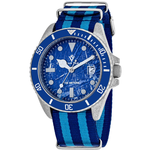 View full detailsDistressed Stainless steel case, Nylon strap, Patterned Blue dial, Quartz movement, Scratch resistant mineral, Water resistant up to 10 ATM - 100 m...