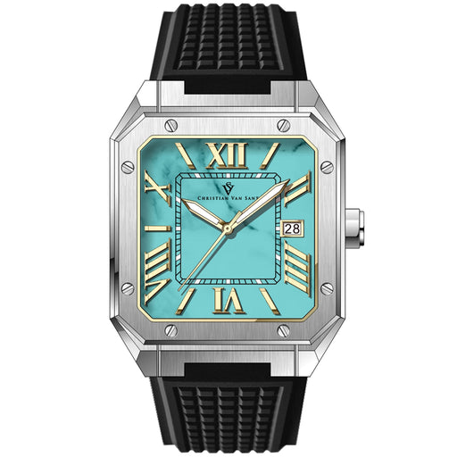 Stainless steel case, Rubber strap, Green dial, Quartz movement, Scratch resistant mineral, Water resistant up to 5 ATM - 50 meters - 165 feet