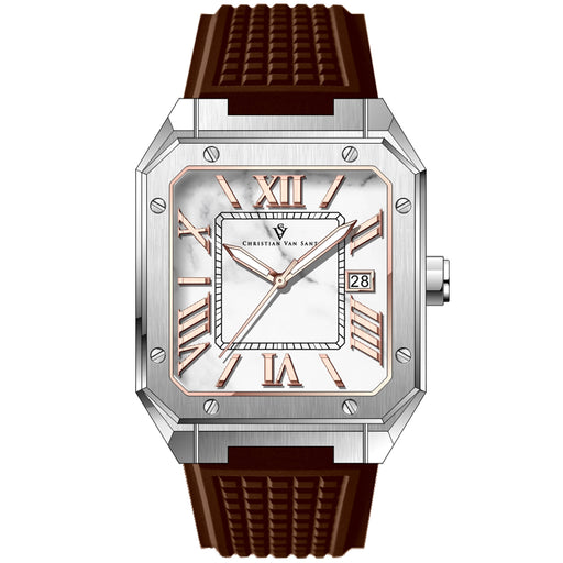 Stainless steel case, Leather strap, Brown dial, Quartz movement, Scratch resistant mineral, Water resistant up to 3 ATM - 30 meters - 100 feet
