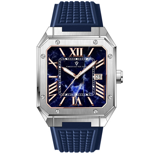 Stainless steel case, Rubber strap, Blue dial, Quartz movement, Scratch resistant mineral, Water resistant up to 5 ATM - 50 meters - 165 feet