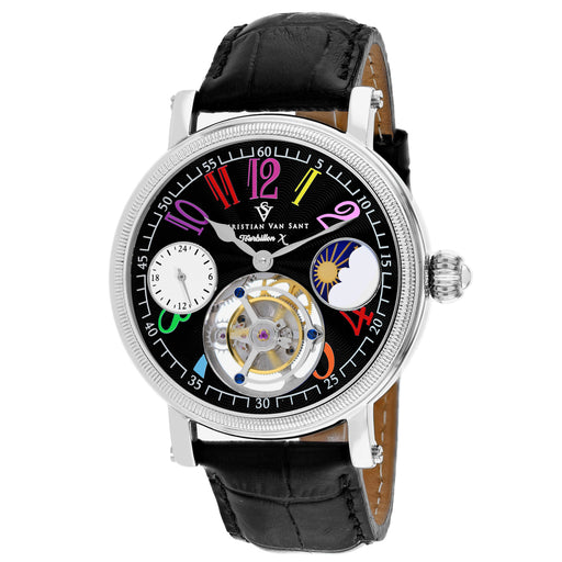 Stainless steel case, Leather Strap, Black dial, Tourbillion movement, Scratch resistant mineral, Water resistant up to 3 ATM - 30 meters - 100 feet