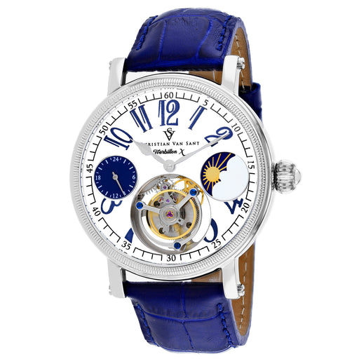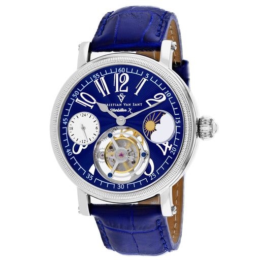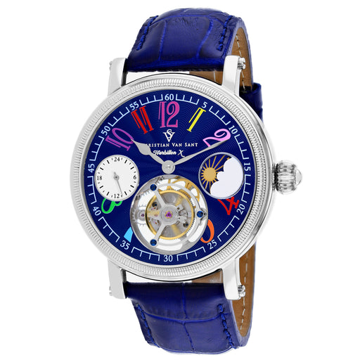 Stainless steel case, Leather Strap, Blue dial, Tourbillion movement, Scratch resistant mineral, Water resistant up to 3 ATM - 30 meters - 100 feet
