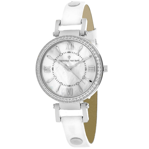 View full detailsStainless steel case, Leather strap, white mother of pearl dial Swiss Parts Quartz movement, Scratch resistant mineral, Water resistant up to 3 ATM...