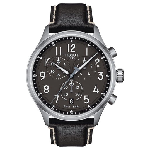 Stainless steel case, Leather Strap, Grey dial, Quarts movement, Scratch resistant sapphire, Water resistant up to 10 ATM - 100 meters - 330 feet