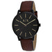 Stainless steel case, Leather strap, Black dial, Quartz movement, Scratch resistant mineral, Water resistant up tp 5 ATM - 50 meters - 165 feet