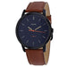 Stainless steel case, Leather strap, Black dial, Quartz movement, Scratch resistant mineral, Water resistant up to 5 ATM - 50 meters - 165 feet
